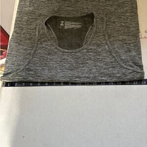 Z by Zella Activewear Tank Top Heathered Gray Size Medium Razorback Sleeveless Athletic Top. Machine Washable with a Hi-Low hem and round neck. Stretchy and breathable lightweight material made of 66% nylon and 34% Polyester.