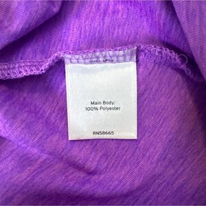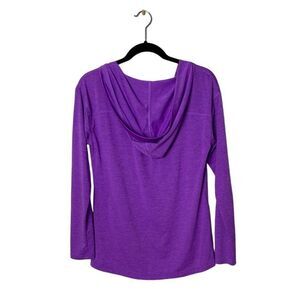 A medium-sized, purple Z by Zella V-neck hoodie workout shirt designed for women. Crafted from high-quality polyester, it offers comfort, style, and performance.