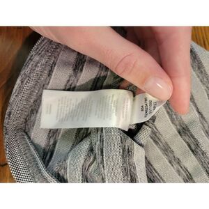 This is a gray horizontal lined Z by Zella muscle tee with static and Birdseye print. This top measures 21 inches in from shoulder to hem, 18.5 inches from armpit to armpit, and the straps are 2.5 inches in width. This top is preloved with no flaws.