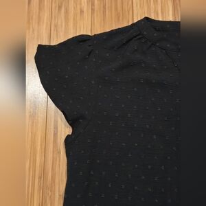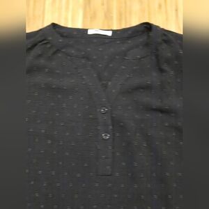 Elevate your wardrobe with this elegant black button-front top. Perfect for any occasion, this versatile piece offers both style and comfort. Good condition.