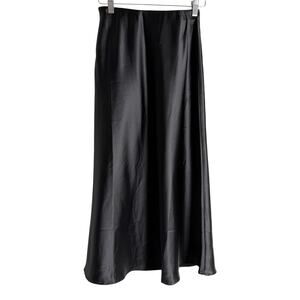 Zeagoo Black Classic Minimalist Satin Slip Blogger Midi Skirt Size XS