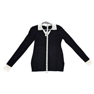 Zeagoo Black & White Knit Long Sleeve Collared Sweater XXL