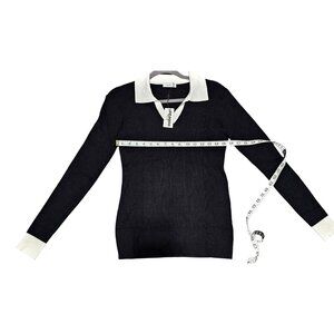 This versatile black sweater with a white collar and cuffs offers a polished look, ideal for professional or semi-formal settings. The breathable viscose blend ensures comfort without compromising style.