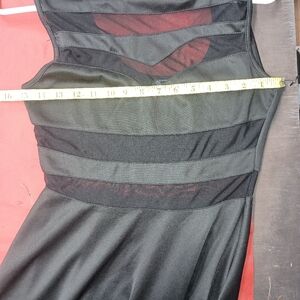 Stylish black dress with red accents. Perfect for any occasion. Comfortable and chic.