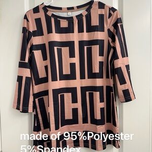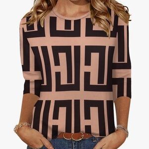 Zeagoo Black and Tan Geometric Women's Blouse