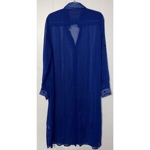 Zeagoo Cobalt Blue Mesh Button Up Shirt/Cover Up Tunic Sz Large Beach Resortwear