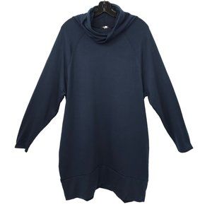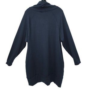 Zeagoo Mock Cowl Neck Knit Dress Womens Size L Blue Long Sleeve Banded Hem HIdden Pockets NEW