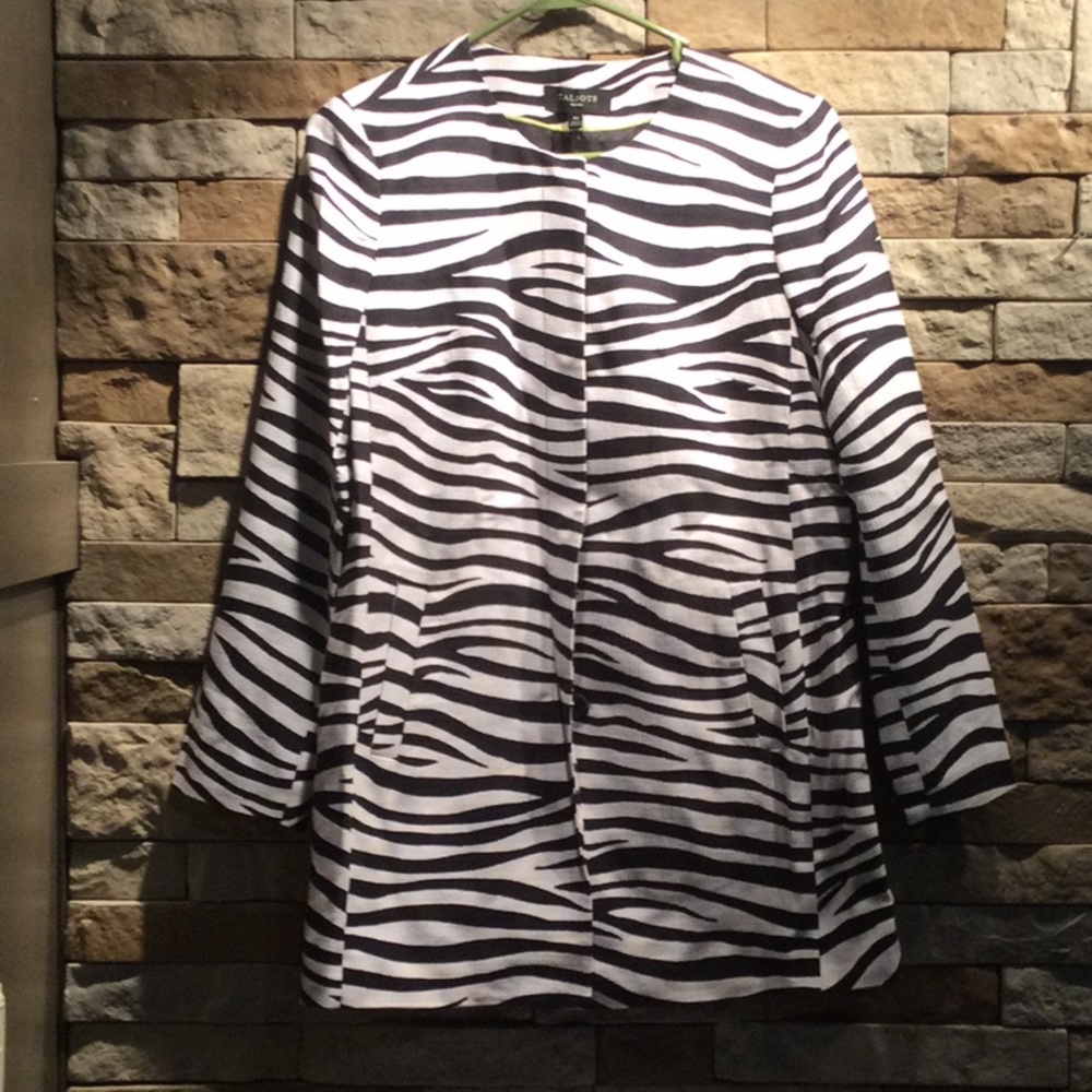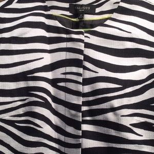 Talbots size 10 zebra themed blazer. NWT cotton and modal with polyester shell. No damage, stains or smell.