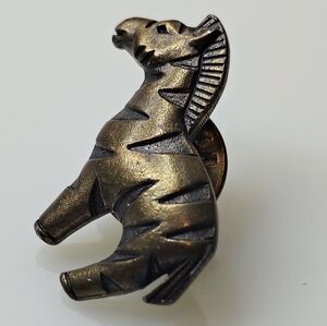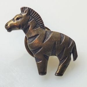 Tiny zebra brooch. Its unique design makes it a standout accessory. Dime shown for size reference.