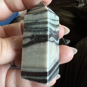 Zebra Calcite Tower Point. Short and weighty meditation stone.