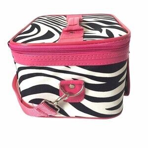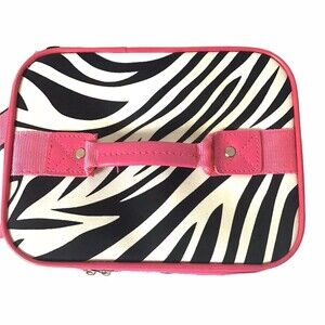 Zebra Cosmetic Case with Mirror, Top Handle, and Shoulder Strap