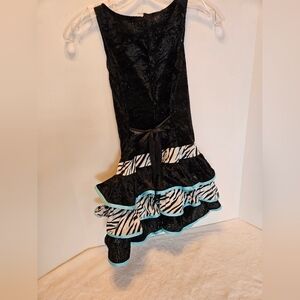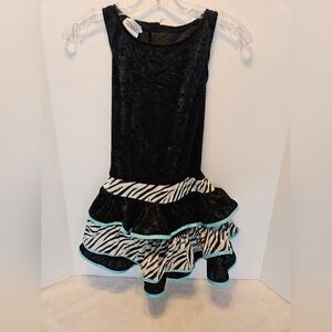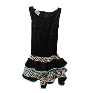 Make Halloween unforgettable with this gently used Zebra Girl Halloween costume by Rubie’s! Designed for dress-up fun and spooky celebrations, this kids’ costume features a black velvety bodice and a 3-tiered ruffle skirt with alternating zebra print and solid black layers. Bright turquoise trim adds a playful pop of color, making this outfit stand out for trick-or-treating, school parades, or themed parties.