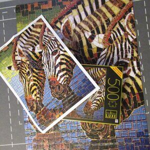 This listing is for the 500 piece "Zebra Glass" Milton Bradley/Big Ben brand puzzle pictured. This puzzle was more challenging than expected for a 500 piece puzzle. The pieces do not fit tightly together, although the colors are vibrant and varied throughout. Once finished it was very nice, but it was a challenge with the mosaic nature of the image. There are no pieces missing, it is in good used condition and has only been assembled once by adults.