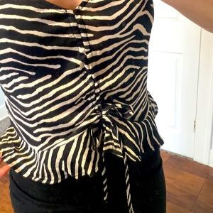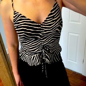 Cute zebra print tank! pull the strings down in the center and it gathers up creating more of a V shaped crop.