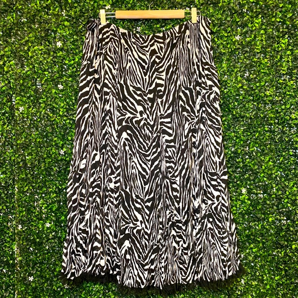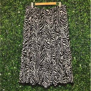 Zebra print maxi skirt π€ Lightweight sheer material over black slip, sheer hem, elastic waistband. Brand: Peter Nygard. Tagged large but fits bigger. Fits up to 3X - waist 37-46 / length 35β