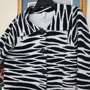 Zebra Print Button-Up Jacket Sweater Medium 12 Contemporary Career Office