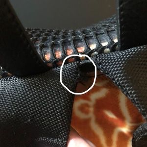 ****The buckle doesn't always stay closed. There is a small rip on the backpack strap and the drawstring closure has slightly come loose (SEE PHOTOS). There are some little scuffs on the inside of the backpack (SEE PHOTOS)****