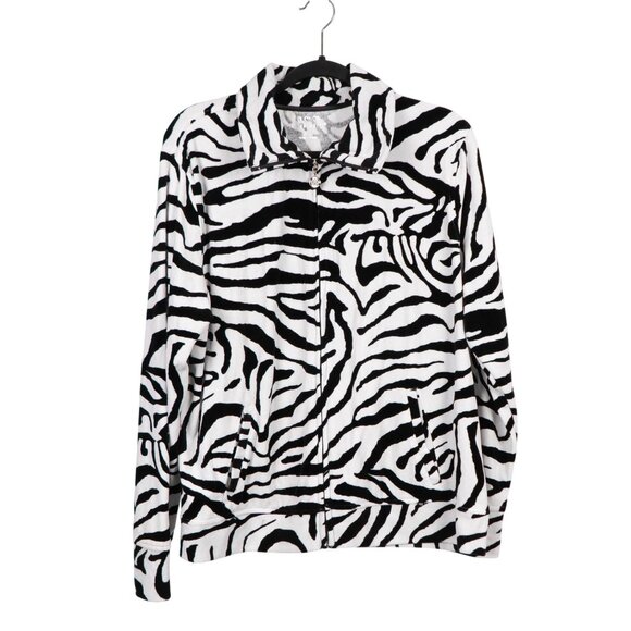 Zebra Print Full Zip Fleece Jacket XL Womens Threehearts Black White Soft Fleece