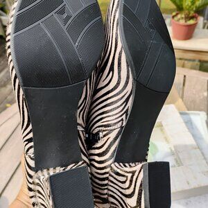 Zebra Print Leather Ankle Booties – Size 6W – Pointed Toe Block Heel