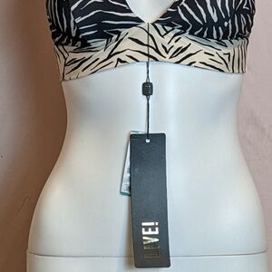 LIVE! brand zebra print reset double strap bikini top with tie back. New with tags