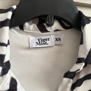 Stylish zebra print dress with ruched detailing. Long sleeves and button-up front.