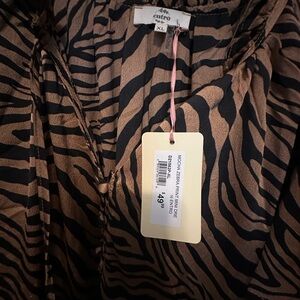 Stylish zebra print dress with ruffle details. Perfect for a bold look.