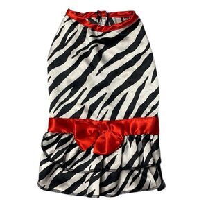 Dress has hook and loop closures and is a lightweight satin fabric. Please check measurements to ensure a good fit.