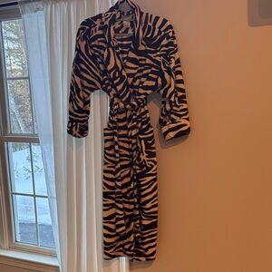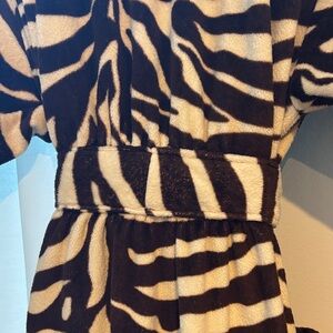Stay cozy and stylish with this zebra print robe. Pockets attached tie Perfect for lounging at home.