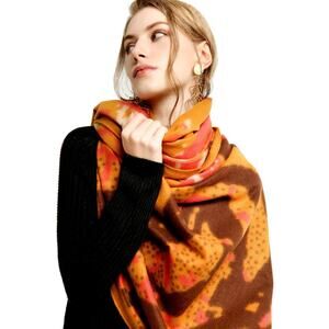 Zebra Print Wool Scarf Mustard Yellow Animal Print Wrap Large Soft Shawl
