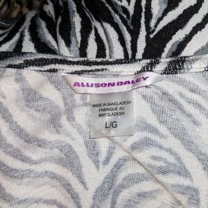 Picturing the Zebra Print Zip-up Sweater in Black and White by Allison Daley.