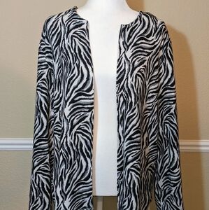 Zebra Print Zip-up Sweater Shacket in Black & White Stripes by Allison Daley