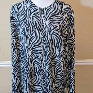 Zebra Print Zip-up Sweater Shacket in Black & White Stripes by Allison Daley