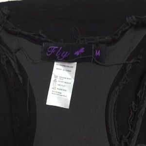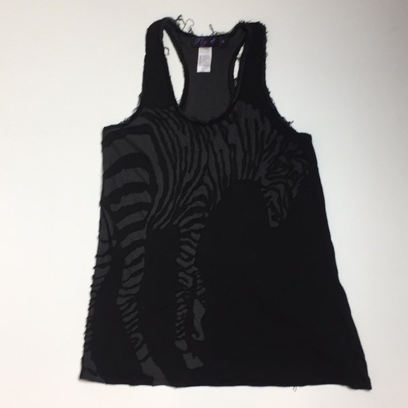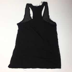 Zebra Razorback tank. Purposefully Frayed. Black in color.