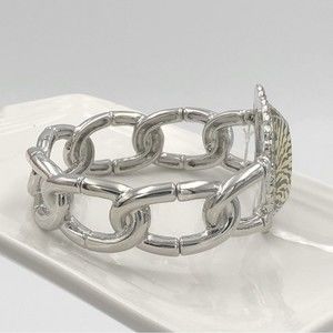 🌼 Zebra Stripe Print Heart Rhinestone Silver Stretch Bracelet