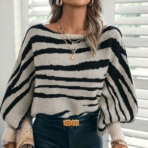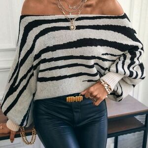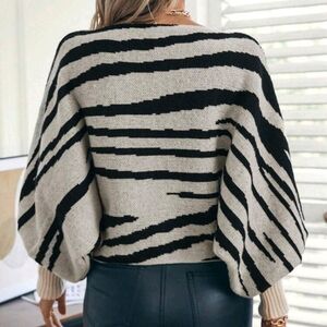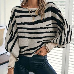 Zebra Striped Pattern Batwing Sleeve Sweater,Long Sleeve Tops