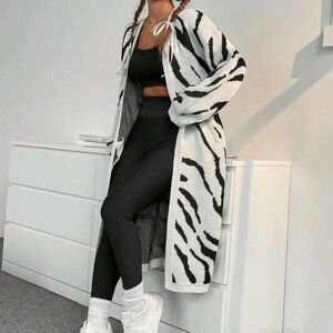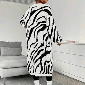 Zebra Striped Pattern Drop Shoulder Duster Cardigan