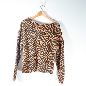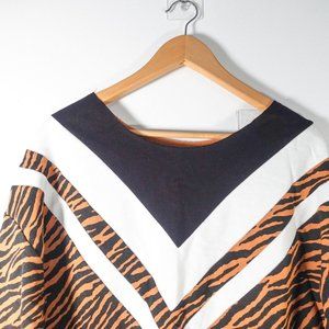 Zebra Sweater Women XL Brown Cotton Animal Knit Pullover Striped Boho Jumper