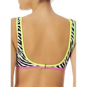 Feel the heat in this zebra print bikini top from No Boundaries! Suit comes with S-hook back closure, removable cups, and boning for added support. It is fully lined with recycled Nylon and the shell is made from 82% Nylon and 18% Spandex. Imported. Swimwear that makes a splash - No Boundaries is your one stop shop for the hottest trends in swim.
