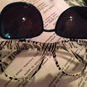 Zebra printed sunglasses and just clear lenses. A little dusty with minor scratches.