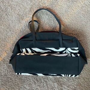 Super cute 18 in x 12in tote holds a lot. Inside red lining with zipper pocket Zipper closure with long shoulder straps.