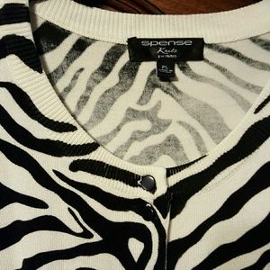 Spense Knits Petite, 3/4 sleeve, Button up cardigan. Only worn one time. 77% Rayon 23% Nylon, machine washable.
