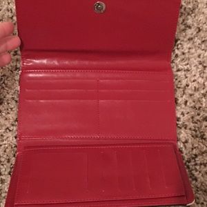 Excellent condtion, barely used. A lot of pockets and card slots with checkbook spot as well.
