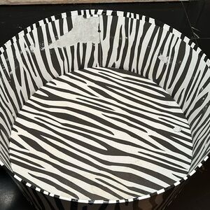 Zebra cardboard boxes with variety of sizes. Used but in good condition. 16”, 13”, and two 12”. Two of the boxes have wearing as seen in photos.