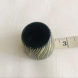 Black and white striped toothpick holder from Africa. Given to my mom as a gift in the 80’s from a trip to Africa. Can hold toothpicks or pens! See photos for measurements.