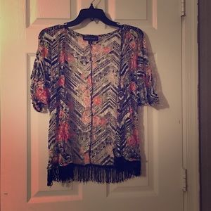 Zebra/Floral silky lightweight cardigan w/ fringes