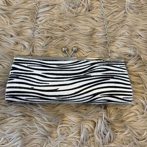 Cute zebra clutch with should chain to use as desired. Good used condition.