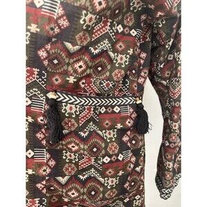 Zeen Pakistani Unisex Indian Native Geometric Rustic Cotton Long Sleeve Jacket S