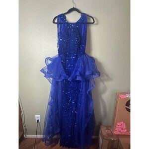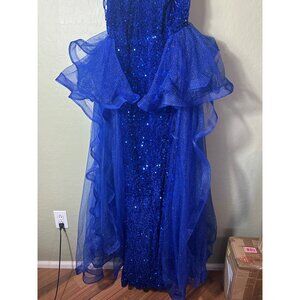Zeeyecie Sequin High Neck Royal Blue Prom Dress Sparkly Tulle Ball Gown 8