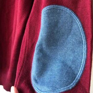 Zegna Baruffa Men's Italian Merino Wool Burgundy V-neck Elbow Patch Sweater L