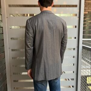 Ermenegildo Zegna gray 100% wool sportcoat blazer. Two front buttons. Functional chest pocket and two side flap pockets. 100% rayon lining with inner pockets. In excellent condition. Italian Size 50R - 21.5" pit to pit; 24" sleeves; 32" total length.